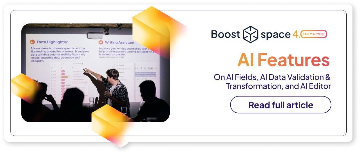 Boost.space 4.0 brings artificial intelligence to the forefront of data management, unlocking new levels efficiency.