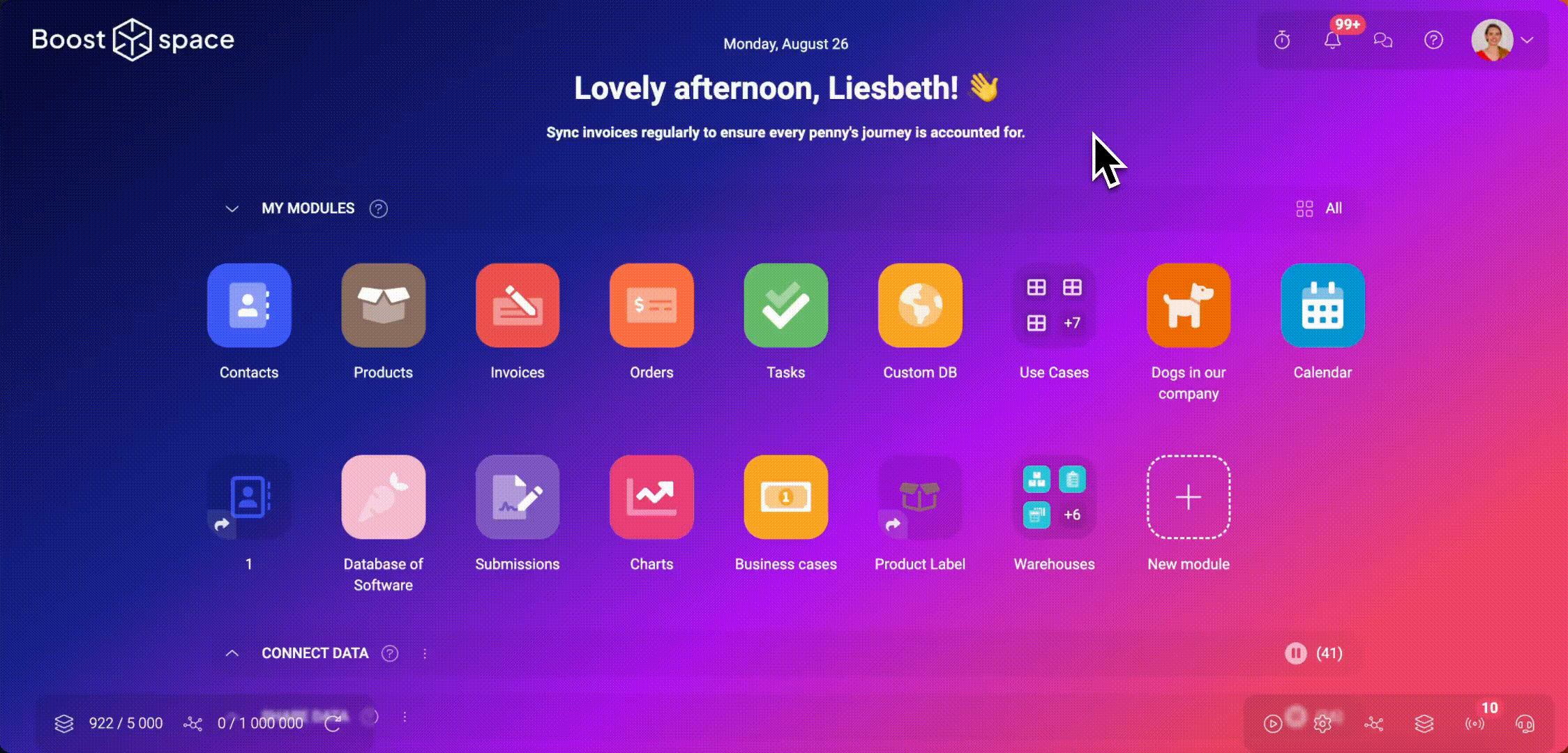 - Easy Sync: This feature lets you synchronize both existing records in your tool and also functions as a Webhook. Any changes made in the tool are instantly updated in Boost.space.