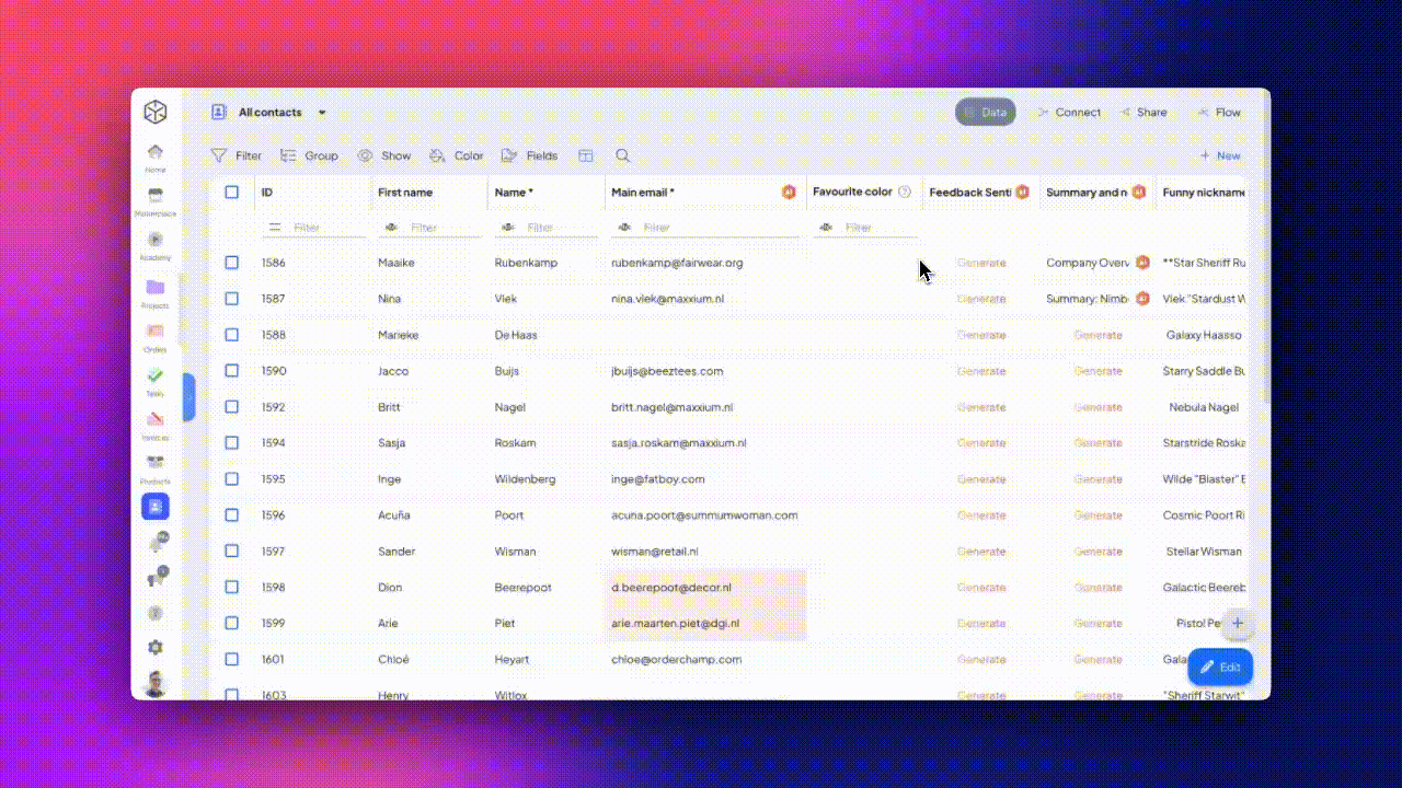 For even greater accuracy, AI Data Validation helps identify anomalies, duplicates, or specific data patterns with customizable or pre-made prompts. Plus, the AI Data Editor lets users edit content on the spot—translate, rephrase, or even add emojis effortlessly!